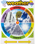 お天気を覚えましょう。 矢印の部分をきりとって真ん中にピンでとめたら、その日のお天気を示すことができます。裏面にはポスター内容と関連する、コピーして使えるアクティビティがあります。 (紙製/550×430mm/5-7歳)
