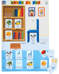 透明なプラスティック・ポケットにカードを入れて前置詞の学習をしましょう。
