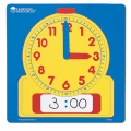 書いて消せる学習時計 デモ用 頑丈なラミネート加工の学習時計。お手頃価格の教室教材。 色分けされた可動式プラスチック製時計針。 時刻を書いて消せるスペース付き。 30cm×30cm